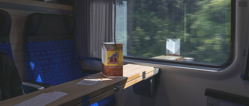 Cestou do Splitu boli všetky lôžka vypredané, a mne sa ušlo jedno miesto v klimatizovanom kupéčku. To sa stalo mojou pomyselnou pracovňou. Elektrická prípojka, WiFi a stolík, čo si viac priať? Už len aby som to mal celé pre seba až do Splitu. Takto až do Viedne som stihol spracovať fotky a poslať do práce. Medzitým sa mi nabíjal foťák a pripravoval na ďalšie fotenie cestou do Splitu.