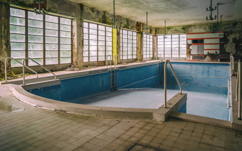 Tento hotel som už viackrát videl. Či už na fotkách, alebo z okna vlaku. Prv som si myslel, že to je nejaký zámok, ktorý je v rekonštrukcii. Mýlil som sa. Táto stavba bola vytváraná priamo, ako hotel v roku 1870. Ani by ste nepovedali, že v súčasnosti je to takmer opustená stavba. Postupne keď sme sa k tomu blížili, ukazovali sa prvé nedokonalosti. Či už na ceste, alebo na oknách a podobne. Neskôr vysvitlo, že hotel bol 30 rokov opustený, a len nedávno sa pustili do jeho rekonštrukcie. A sme pri problémoch. Tento hotel mal viacero majiteľov. Niektorí sa oň nevedeli starať, a aj to je dôvod, prečo je to tu takmer opustené. Napriek tomu tu sú niektoré miestnosti, ktoré sa využívajú na rôzne spoločenské akcie, či výstavy. Dýcha to celé historickou atmosférou. Na viacerých miestach som mal svojim spôsobom urbex exploring a odniesol som si aj menšie zranenie na nohe. Pri hľadaní záberu a cúvaní som si dával pozor, aby som nespadol do malého bazénika. Druhou nohou som sa oškrel o položené kovové rámy okien. Nebol by to Matúš, keby si neodniesol podobnú pamiatku. Dosť na tom, že som mierne kríval pre opuchnuté chodidlo. Motivácia a chuť spoznávať ma hnala vpred a octanová masť to istila.